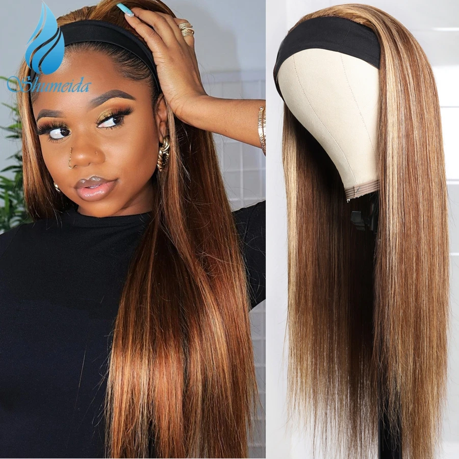 Name: Alta luz de Color peluca con diadema pelucas de cabello humano brasileño Remy pelo recto pelucas con minimechones para las mujeres