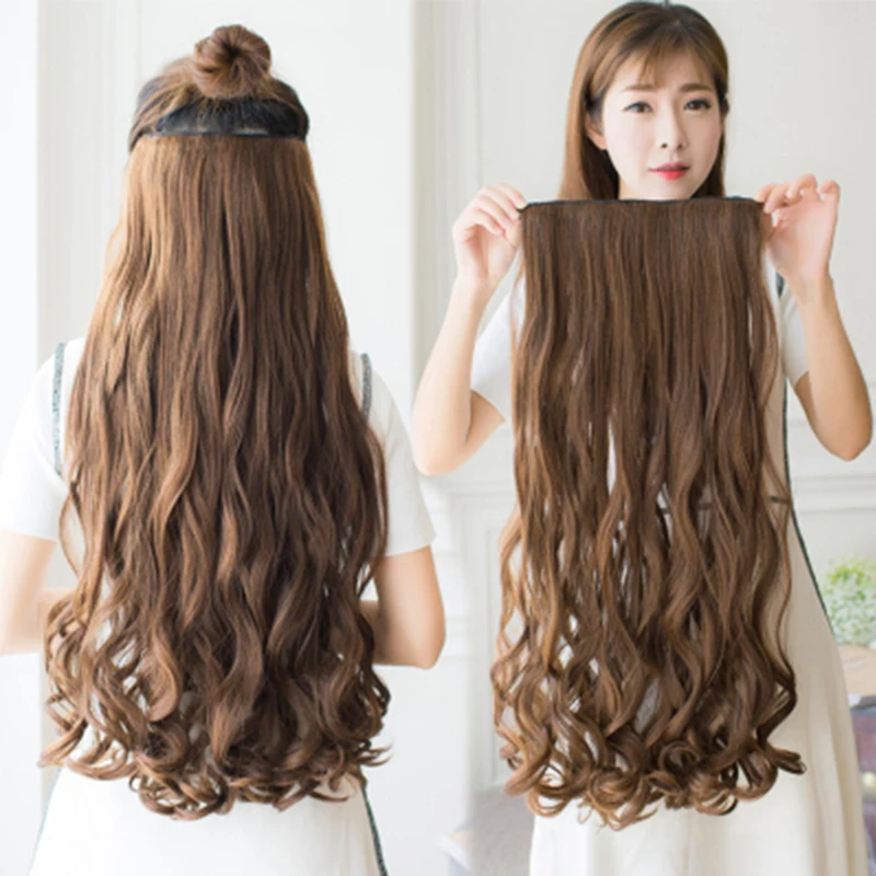 Extensiones sintéticasGran oferta MANWEI-extensiones de cabello sintético para mujer, Clip largo y recto de una pieza, 5 Clips, pelo rubio falso, marrón y negro WDgNpq5Gb
