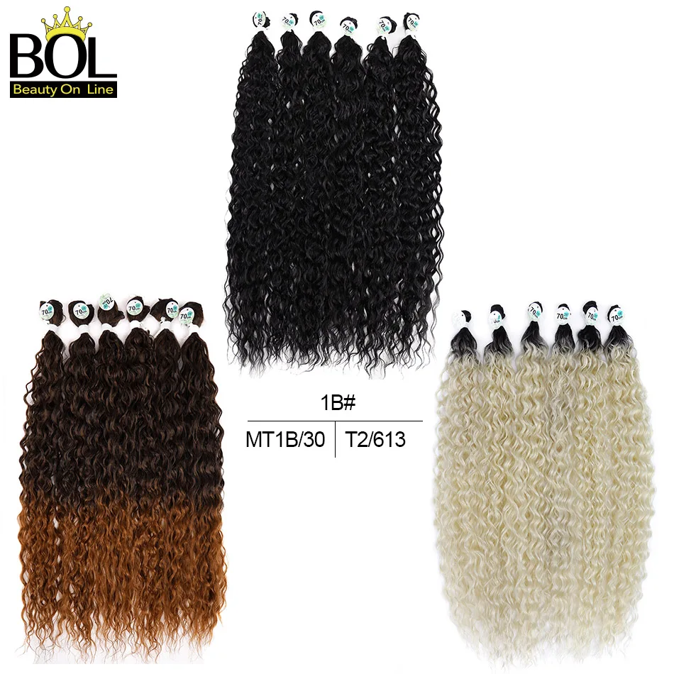 Name: BOL Pelo Rizado de la onda de agua mechones extensiones de cabello sintético Rubio degradado 28 pulgadas sintético largo rizado armadura mechones para las mujeres