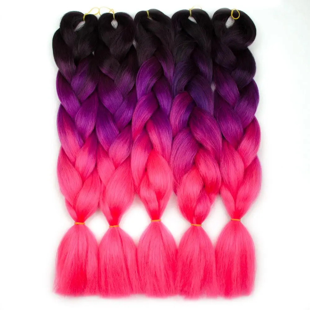 Name: Pelo trenzado sintético 100g 24 pulgadas Single Color degradado verde amarillo Rosa rubia trenza extensión de pelo giro Jumbo MUMUPI