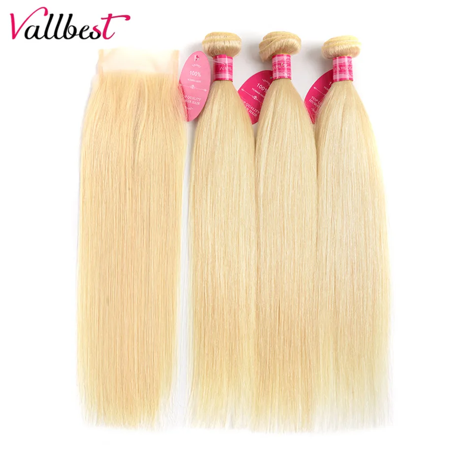 Name: Cabello lacio brasileño Vallbest, mechones 613 rubio con cierre de pelo humano, 3 mechones con cierre, extensión de cabello Remy