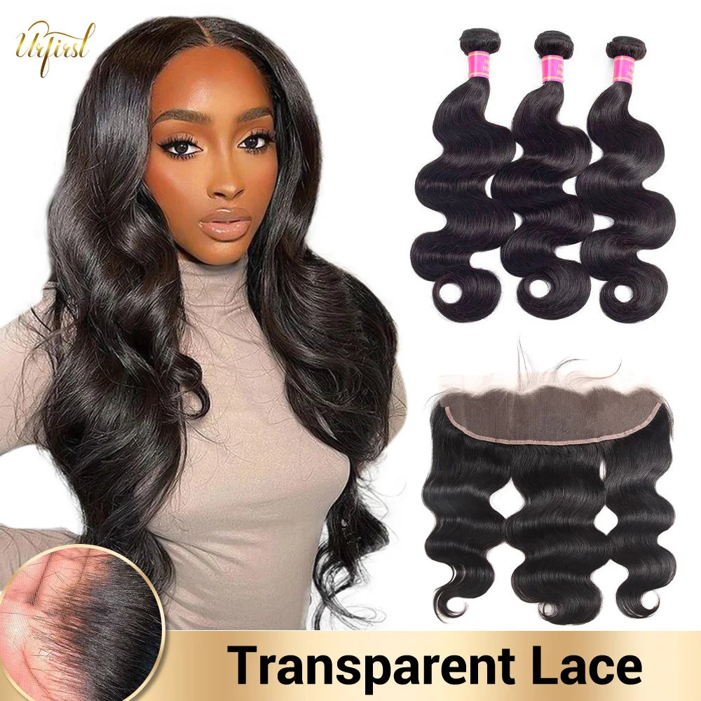 Apropiado artículo y envío urgente. vendedor recomendado para Encaje Frontal transparente con mechones de pelo brasileño, mechones de pelo ondulado con extensiones de cabello humano mechones para mujeres negras