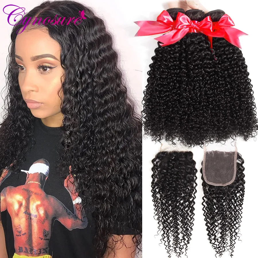 Promoción Extensiones de cabello humano rizado Afro con cierre, tejido de pelo brasileño Cynosure, 3 mechones con cierre, cabello Remy DqG0LMBe