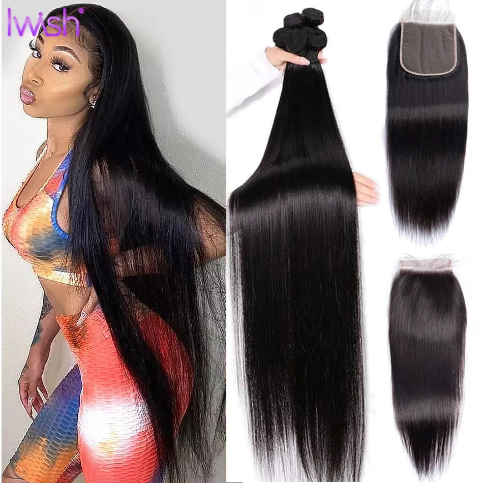 Mejor Extensiones de cabello natural de iwish Official Store por Mechones rectos con cierre extensiones de cabello humano mechones con cierre de encaje 1, 3, 4 mechones, extensión de cabello humano no Remy