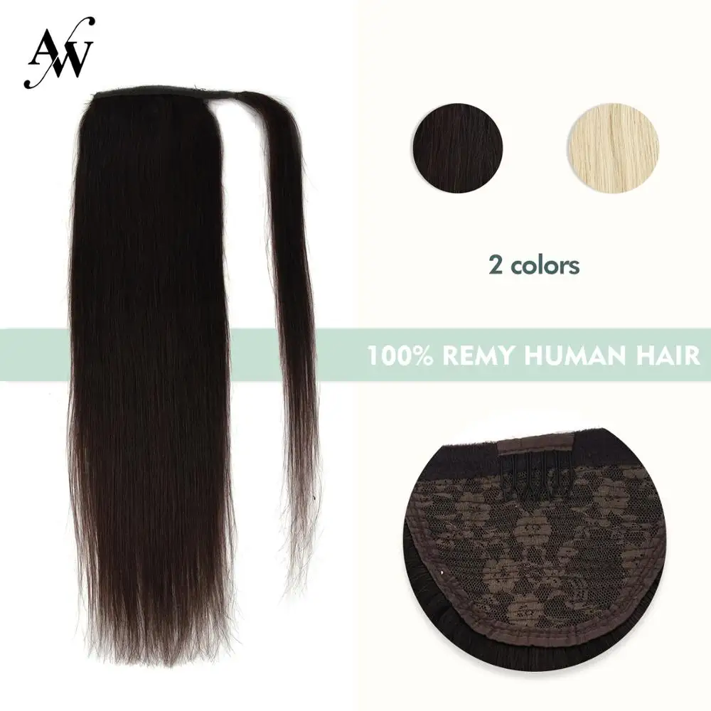 Name: ¡Cola de Caballo de pelo humano recto máquina de pelo Remy de alrededor de Clip en cola de caballo peluca extensión 12 "16" 20"