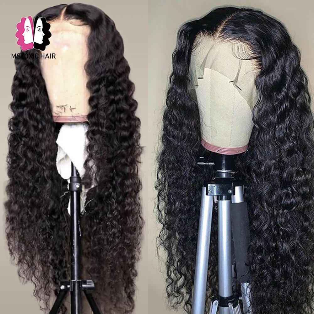 En oferta Mstoxic 13x4 frente de encaje pelucas de cabello humano de la onda de agua brasileña peluca con malla Frontal pelo humano rizado profundo peluca Frontal de encaje Pre arrancado 9jLGYE3j