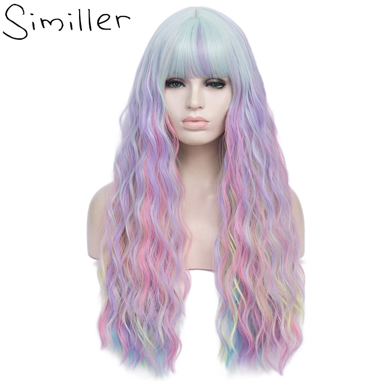 Name: Similler largo de alta temperatura de fibra sintético pelucas para mujeres Ombre Cosplay peluca arcoíris de la onda de agua 70cm